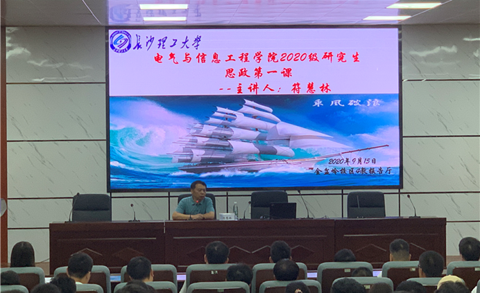 为了让2020级研究生新生更好更快地了解适应研究生学习生活、做好研究生学业规划,电气学院于9月15日下午两点半在金盆岭校区四号教学楼报告厅依次召开“专业第一课”和“思政第一课”,授课人分别是曾祥君教授、党委书记符慧林,课程由研究生辅导员欧彩玲主持,2020级全体研究生参加本次课程。
