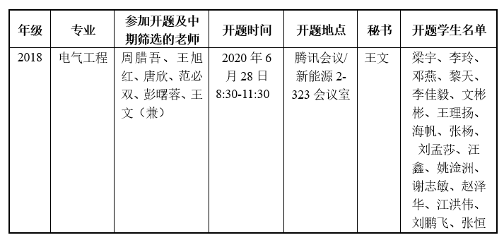 2020年电气与信息工程学院研究生学位论文开题及中期筛选安排表(九)