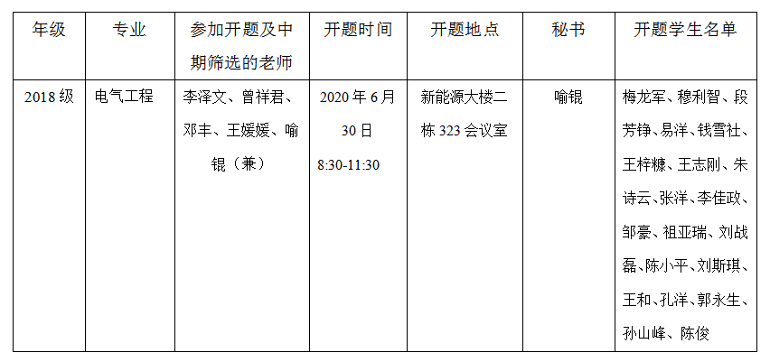2020年电气与信息工程学院研究生学位论文开题及中期筛选安排表(二)