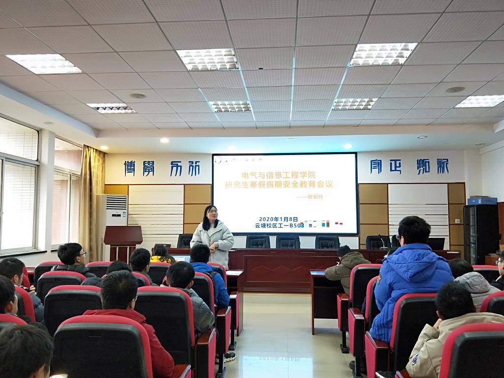 为加强研究生假期安全意识,强化研究生的纪律意识,电气学院于2020年1月8日召开了各年级研究生假期安全教育会议,会议由研究生辅导员欧彩玲老师主持。