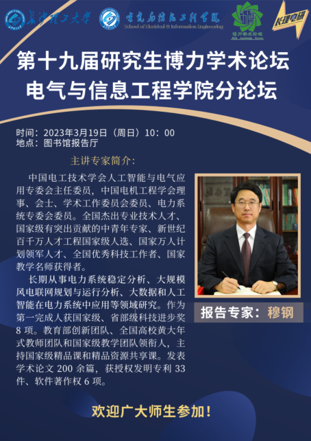 穆钢,东北电力大学教授,博士生导师。长期从事电力系统稳定分析、大规模风电联网规划与运行分析、大数据和人工智能在电力系统中应用等领域研究。作为第一完成人获国家科技进步二等奖 2 项、省部级科技进步奖 6 项。获国家级教学成果二等奖 2 项,领衔的团队分别入选教育部创新团队、全国高校黄大年式教师团队和国家级教学团队,主持国家级精品课和精品资源共享课。发表学术论文 200 余篇,获授权发明专利 33 件、软件著作权 6 项。