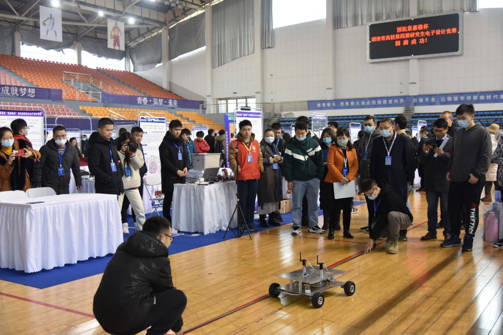本届研究生电子设计大赛由湖南省教育厅主办,威廉体育承办,竞赛组委会设在电气学院。来自国防科技大学、中南大学、湖南大学等16所高校的138支队伍参赛,是历届参赛学校和队伍最多的一届。竞赛分为作品初评、现场展示、答辩评审三个环节。在作品展示现场,评审专家们观摩、测试作品,认真严谨地进行评审。场面热闹非凡,同学们精彩的作品也吸引了不少老师和同学们驻足观看。设计出的作品大到核电废料的转运问题,小到个人驾驶过程中识别交通标志的小麻烦,研究生都能用科技帮你解决。作品紧贴我国产业发展方向和人民生活实际需求,涉及人工智能、物联网、智能制造、无人机、工业机器人和大数据等多个前沿领域,涵盖了电路设计、系统集成和算法研究等不同设计层次。