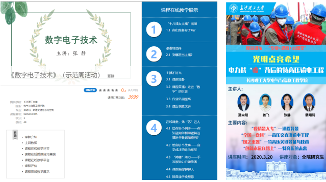 自2月17日学校实施线上教学以来,系里为每位老师配备直播板书的手写数位板,全系教师迎难而上、积极投入,通过微信群开展讨论和交流,从直播平台的选择,到直播技术的应用,再到加强线上师生互动手段等方面,相互取长补短,保证了线上教学的顺利开展。老党员、老教授李茂军与系负责人贺勇、刘铮一道坚持随堂听课,开展线上督导,指导年轻教师改进教学方式方法,确保了全系课堂教学、毕业论文指导的有序开展。张静老师主讲的《数字电子技术》课程获评威廉体育williamhill在线教学示范周“最喜爱的线上课程”;参与打造和主讲的“党员讲坛”《光明点亮希望——电力战“疫”背后的特高压输电工程》面向全院研究生和本科生云上开课,直播课堂人数达6000余人,被新湖南、红网等多家媒体报道,成为学校战“疫”课程思政的亮点。