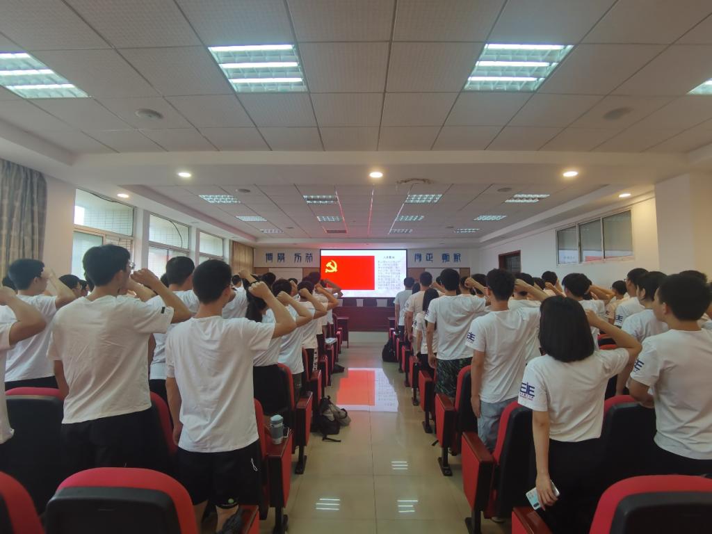 收看结束后,学院145名新发展党员在院党委副书记任艮丰的带领下,高举右拳、面对党旗、庄严宣誓,铿锵有力的誓言表达了对党的忠诚、对共产主义事业的追求和对中国特色社会主义道路的坚定信念。