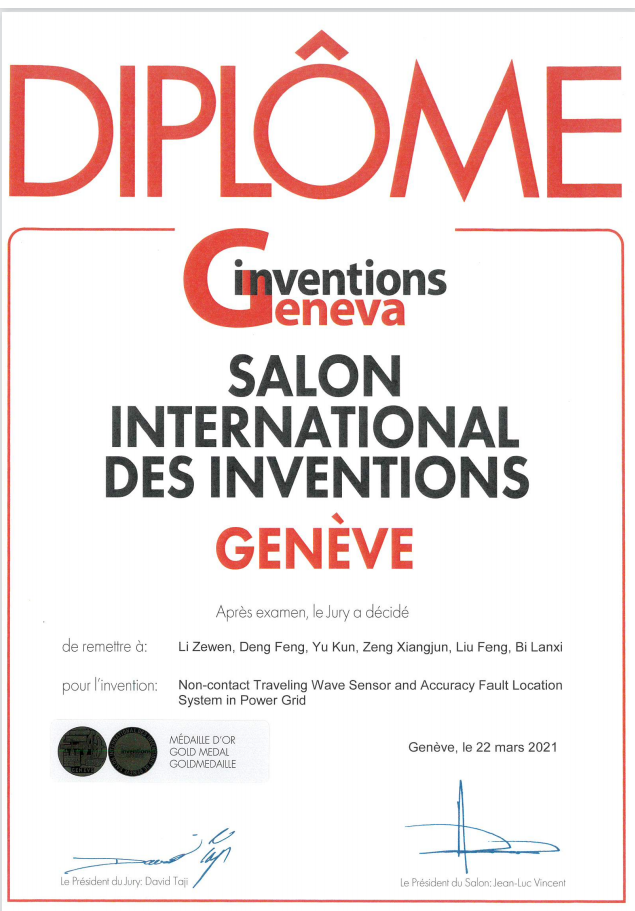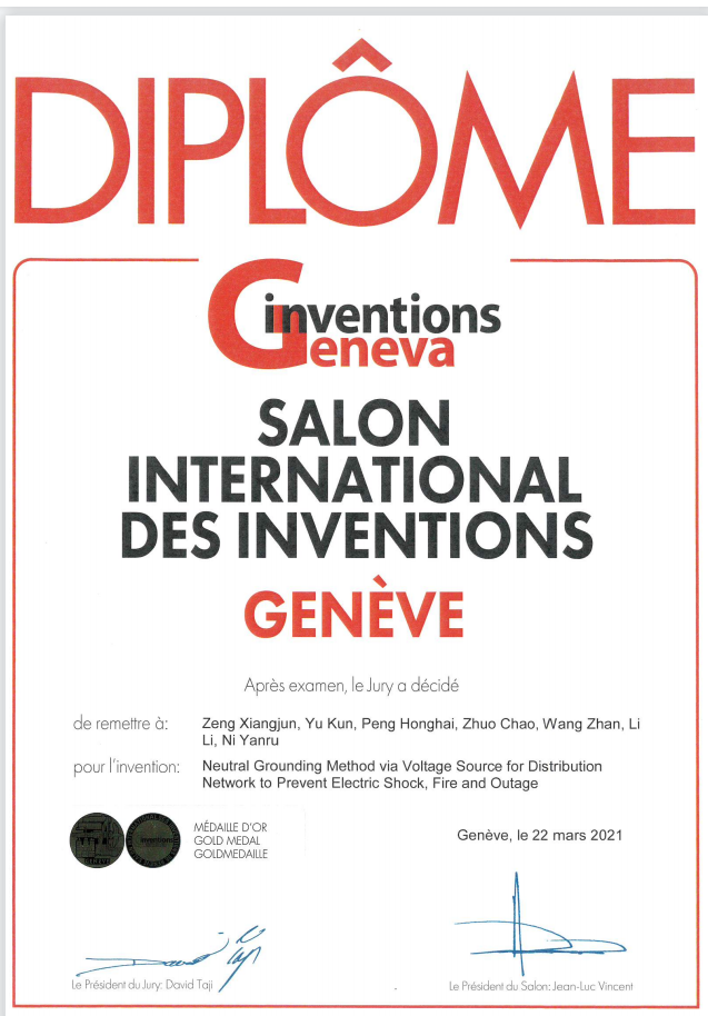 2021年第48届日内瓦国际发明展(International Exhibition of Inventions of Geneva)于当地时间3月18-25日通过线上开展评审,我院参赛“预防配电网触电、起火和停电的中性点经电压源接地方式”项目“电网非接触式行波传感器与故障精确定位系统”项目,双双斩获展会金奖,是我院首次获得该奖项。