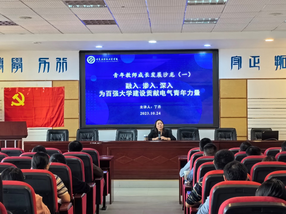 10月24日,我院首期青年教师成长发展沙龙在工一B503学术报告厅举行。院党委书记丁丹主讲,70余位青年教师参加。