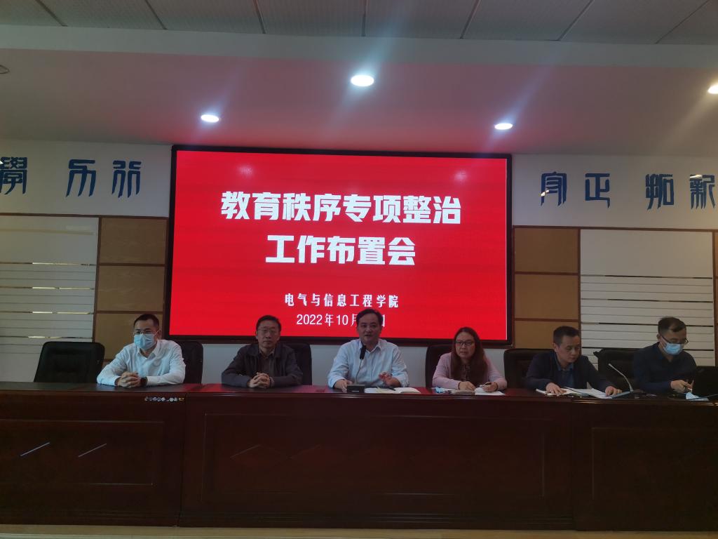 10月11日下午,学院在工一B503召开教学秩序专项整治工作大会。会议由院党委书记伍接朝主持,副院长唐欣布置工作,全体院领导及全院教职工参加。
