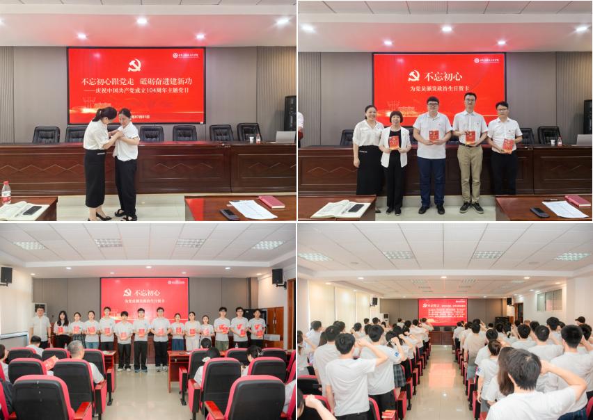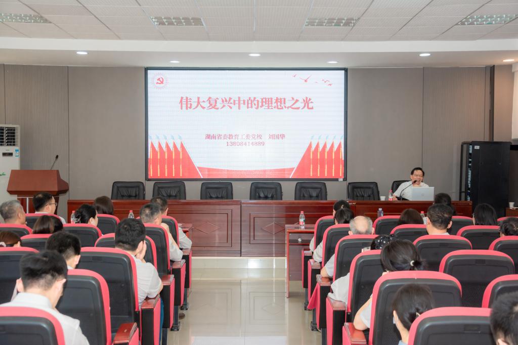 7月1日,学院庆祝中国共产党成立104周年“不忘初心跟党走 砥砺奋进建新功”主题党日活动在工一B503报告厅举行,学院党委班子、全体教工党员及学生党员代表200余人参加。湖南省委教育工委党校原常务副校长刘国华教授应邀上专题党课,院党委书记丁丹为新党员佩戴党员徽章、为全体师生党员颁发政治生日贺卡并讲话,院党委副书记周巍主持活动并带领新党员宣誓、老党员重温誓词。