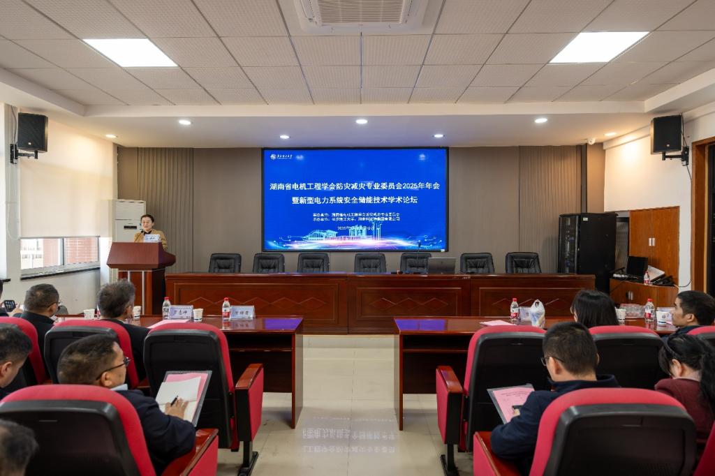 12月20日,由我院承办的 “湖南省电机工程学会防灾减灾专业委员会2025 年年会暨新型电力系统安全储能技术学术论坛”在云塘校区举行。本次活动聚焦新型电力系统防灾减灾与安全储能技术核心议题,旨在搭建行业高水平学术交流平台,推动技术创新与产学研深度融合。开幕环节由蒋正龙主持。