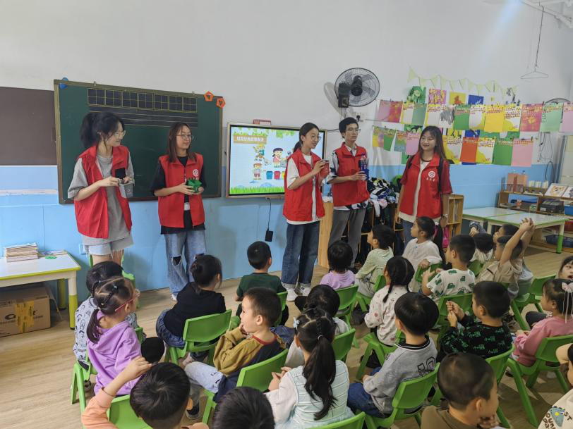 秋风送爽,志愿者们亦送来了趣味一课。志愿者们作为小老师在讲台上循循善诱,以生动形象的语言从“垃圾”的定义入手,耐心地讲解基础的垃圾分类知识,同时结合活泼有趣的垃圾分类小游戏,让垃圾分类的有关知识在欢声笑语中步步走进了孩子们的记忆库中。在小老师们抛出问题后,小朋友们争先恐后举起的小手像是一朵朵昂首挺胸的小花朵,在志愿者们的心田中轻轻绽放,“电池是有害垃圾”、“香蕉皮是厨余垃圾”……一声声稚嫩的回答也为这次启蒙教育活动的成果做出了响亮的回应。
