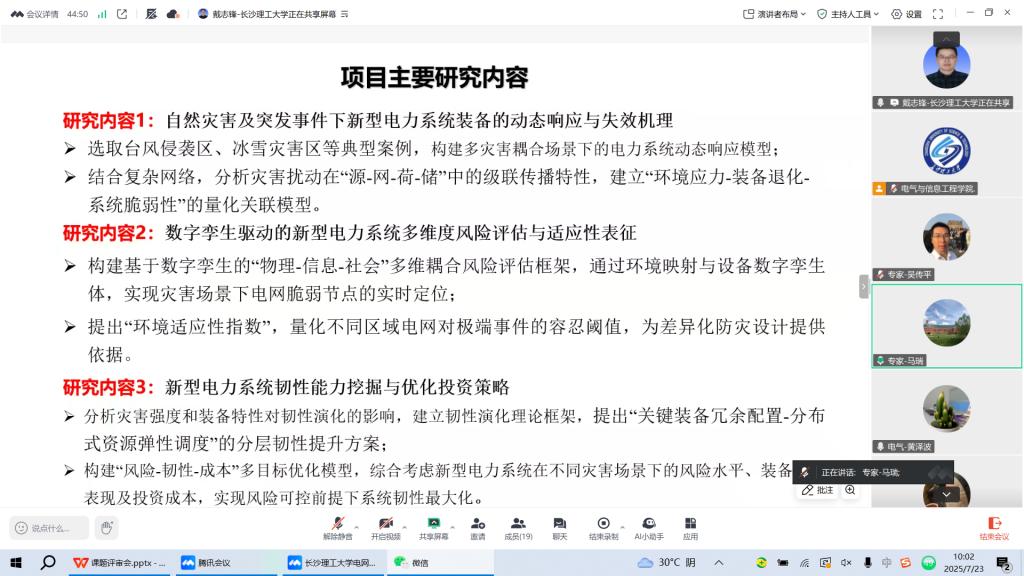 7月23日,威廉体育williamhill电网防灾减灾全国重点实验室(以下简称“全重实验室”)召开了2025年度自主立项课题评审会。会议采用线上、线下(工一B301-4)相结合的方式举行。17项课题接受了严格评议。