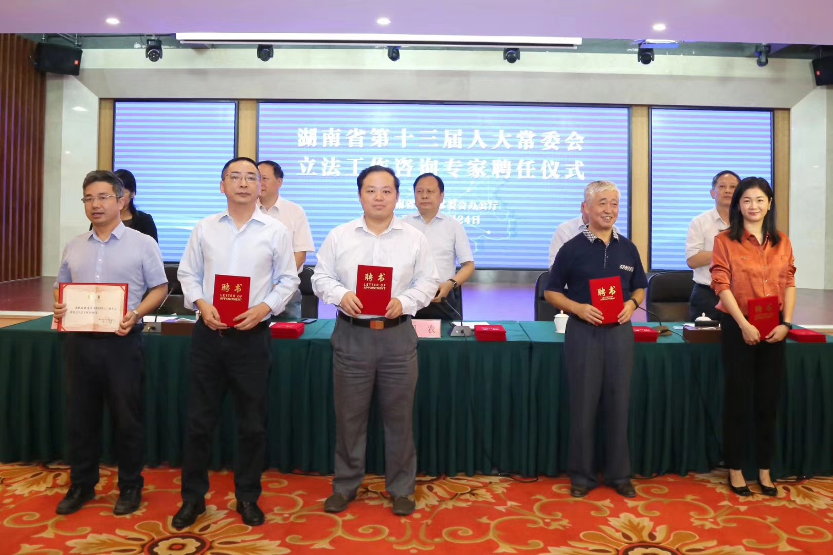 9月24日,湖南省人大常委会举行立法工作咨询专家聘任仪式,省人大常委会副主任周农出席仪式并讲话,省人大常委会秘书长胡伯俊主持。周农指出,省人大常委会聘任立法工作咨询专家主要基于三个方面的考虑,一是贯彻落实党的十八届四中全会的重要体现;二是深入推进科学立法、民主立法、依法立法的重要举措;三是不断提升立法质量和工作效率的重要抓手。周农要求,在开展立法咨询过程中,立法工作咨询专家要胸怀大局,解放思想,实事求是,多提意见,敢提意见;要不断提高深入实际调查研究问题、解决问题的能力;要兼顾好个人职业活动与专家顾问工作,切实投入必要的时间精力,认真研究立法问题;要严格遵守政治纪律和工作规则。省人大各专委会、常委会工作机构和办事机构要不断探索发挥专家作用的机制和形式,形成合力,为专家履职创造良好的环境。