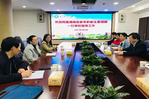 4月2日上午,民盟湖南省委专职副主委胡颖、组织处处长徐智、组织处副处长任师海一行三人来校指导换届工作。