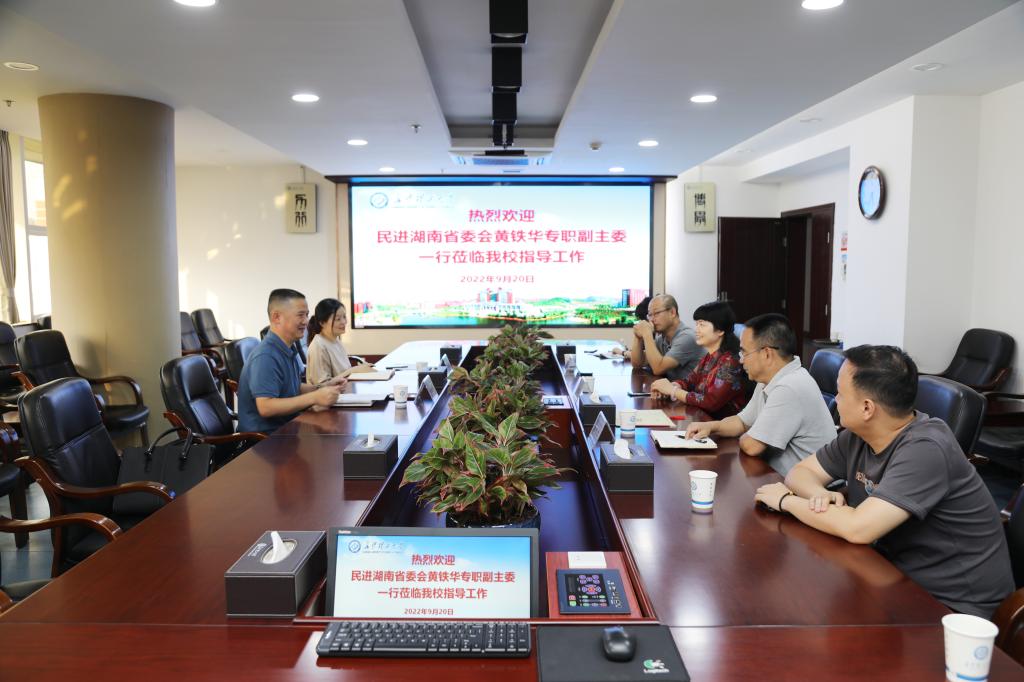 9月20日下午,民进湖南省委会专职副主委黄铁华一行来威廉体育走访调研并召开座谈会。党委委员、副校长蒋璟萍出席会议并讲话。统战部常务副部长黄自力主持会议。民进湖南省委会组织处副处长刘丽、民进威廉体育williamhill支部等相关人员参加了调研座谈会。