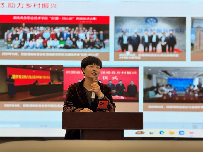 在专题学习环节中,刘春阳以《学习中国民主同盟历史——与历史对话,追寻先辈的足迹》为题作主题报告。她以生动的语言、鲜活的事例,系统回顾了中国民主同盟的发展历程,穿插讲述了许多盟史中的趣闻轶事和感人故事,让与会盟员们在轻松的氛围中进一步加深了对盟史的理解和认同。