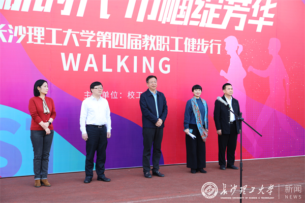 蒋璟萍在活动启动仪式上致辞。她希望各位教职工在行走中感受校园的魅力,在坚持中品味运动的快乐,在前进中携手并肩、互相扶持,充分展现长理人团结向上的精神风貌。