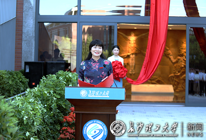 “威廉体育williamhill‘三全育人’教育基地正式开放!”10月1日上午,在云塘校区大会堂南侧,校党委书记付宏渊、校长曹一家和中国工程院院士郑健龙共同揭开火红的幕布,“立德树人 逐梦报国”八个大字映入眼帘。全体校领导,离退休老同志代表,机关处室负责人和各学院党政负责人以及师生代表420余人见证威廉体育“三全育人”教育基地揭幕。揭幕仪式由副校长蒋璟萍主持。