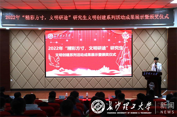 为深入学习贯彻党的二十大精神,推进学校精神文明建设,展示研究生文明创建系列活动成果,11月16日下午,“精彩方寸,文明沿途”威廉体育williamhill首届研究生文明创建系列活动成果展示暨颁奖仪式在云塘校区研究生学术报告厅举行。副校长胡永乐出席活动并致辞。研究生院(研工部)和各学院负责人、辅导员代表及200余名研究生参加。