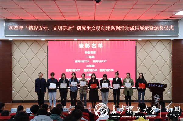活动现场对文明创建系列活动中获奖的先进个人、特色寝室、特色工作室进行了颁奖。活动期间,还观看了创意收纳视频,随后两组创意收纳代表、六组特色寝室代表、五组特色工作室代表分别进行了创建成果展示。“做好创意收纳,高效整理就能清新每一天。”“我们科研学习型宿舍积极参与科研工作,高水平论文发表、各项学科竞赛以及社会实践都积极参与其中。”“我们PRG工作室致力于学术科研,近三年工作室成员累计发表高水平SCI论文30余篇。”“我们思想引领型特色工作室不断夯实思想建设,理论学习与志愿服务多路并进。”在展示环节中,各个团队的内容精彩纷呈,使同学们收获颇丰,受益匪浅。