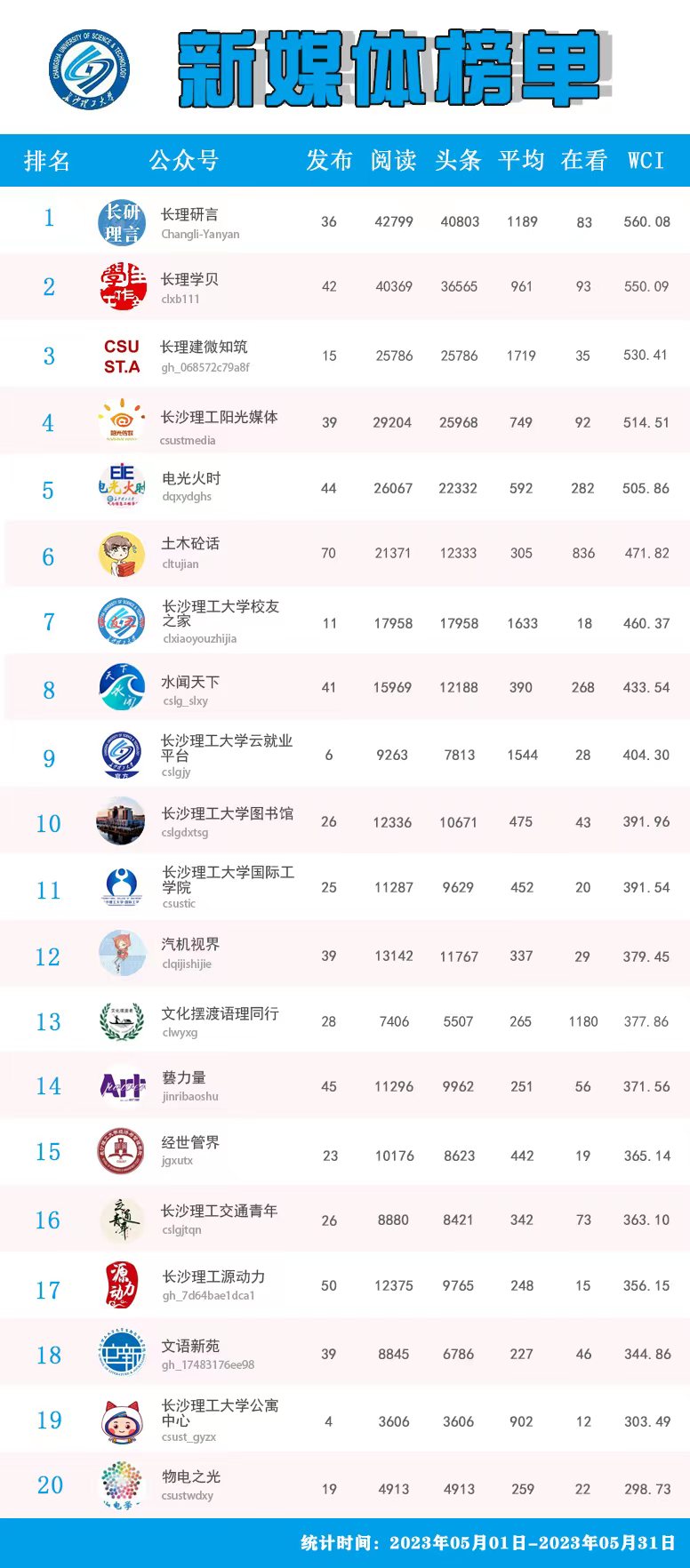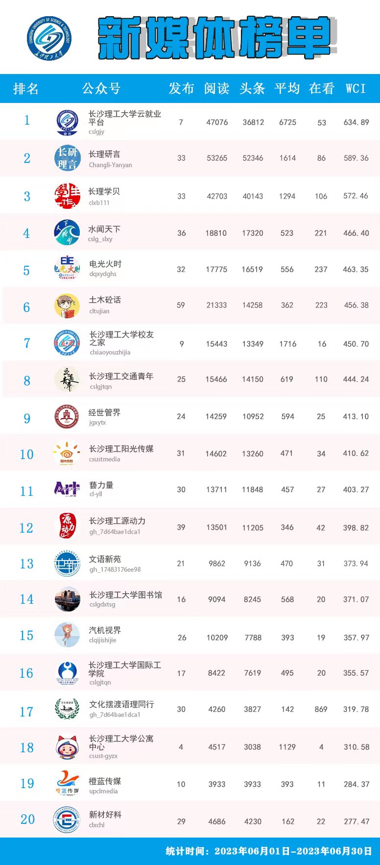 校属单位微信公众号排名(2023年5-6月)