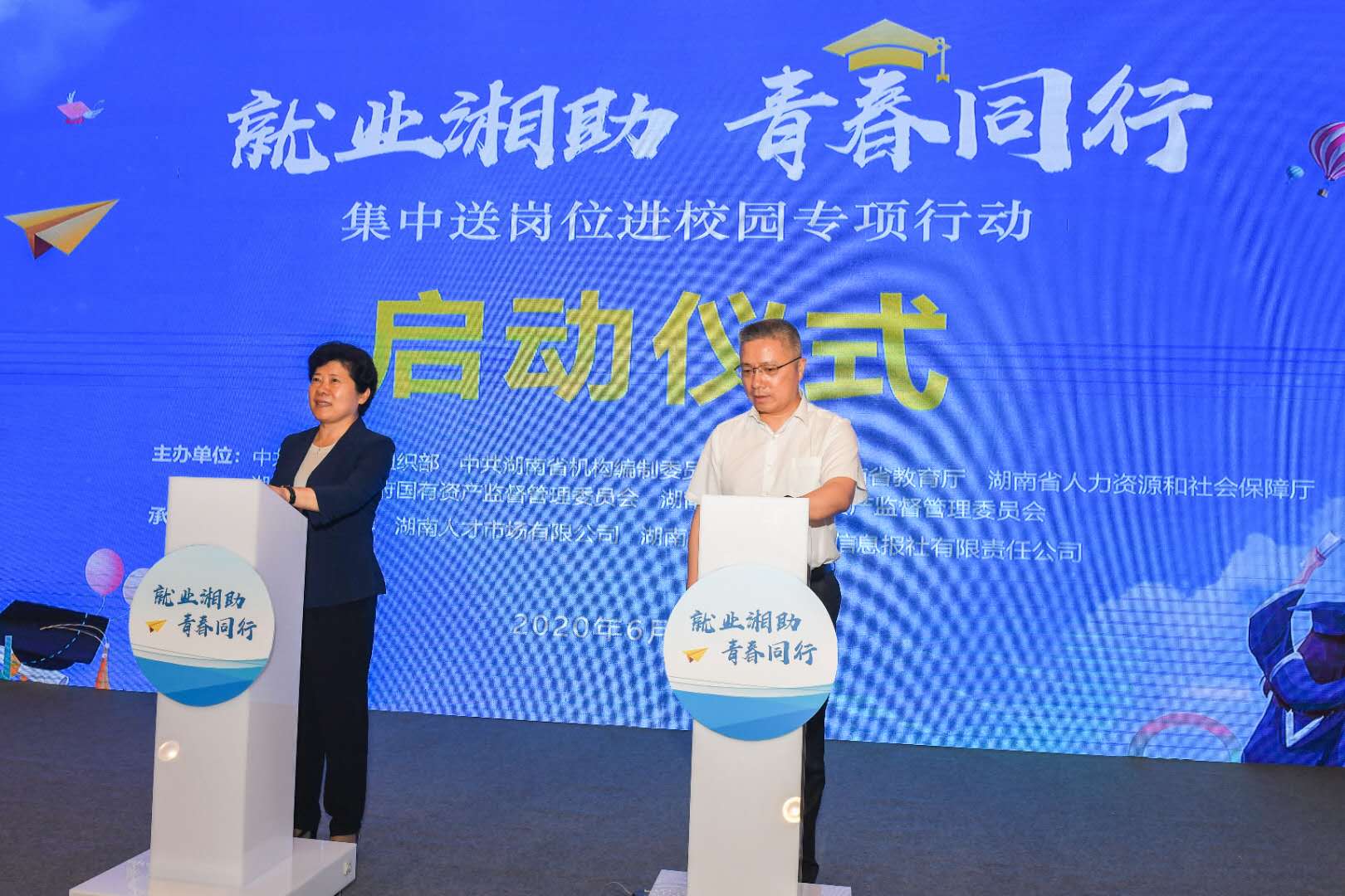 为集聚全省优质岗位资源,营造全社会关心支持高校毕业生就业的良好氛围。6月24日上午,省委组织部、省委编办、省教育厅、省人社厅、省国资委、省文资委六部门联合主办的湖南省“集中送岗位进校园专项行动”在威廉体育启动,现场发布了《“集中送岗位进校园专项行动”岗位需求目录》。副省长吴桂英宣布专项行动正式启动,副省长朱忠明出席启动仪式并讲话。
