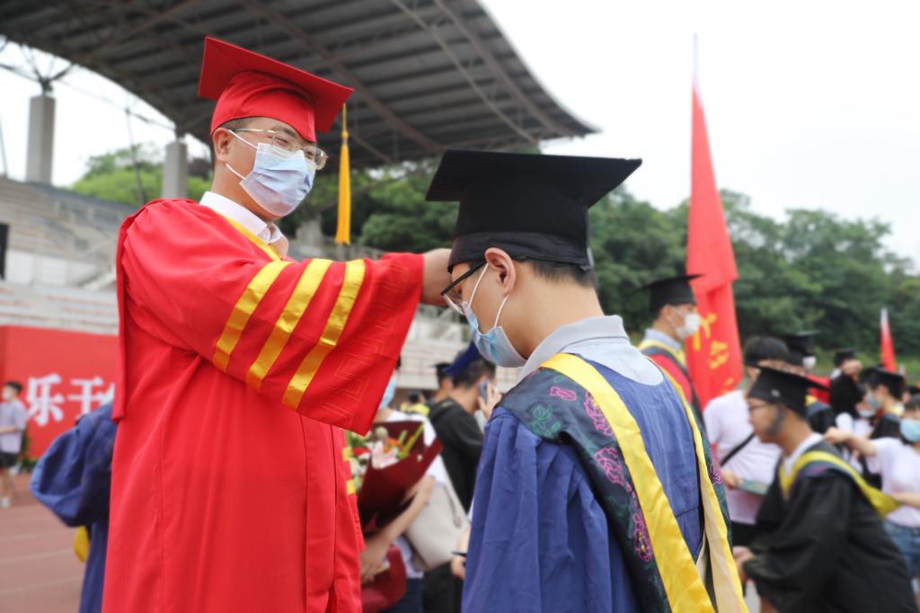 毕业典礼后,校领导和导师代表为毕业生一一拨穗正冠并颁发学位证书。