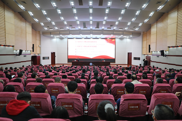 学校全体在家校领导、副处级以上干部与师生代表300 余人听取了报告。