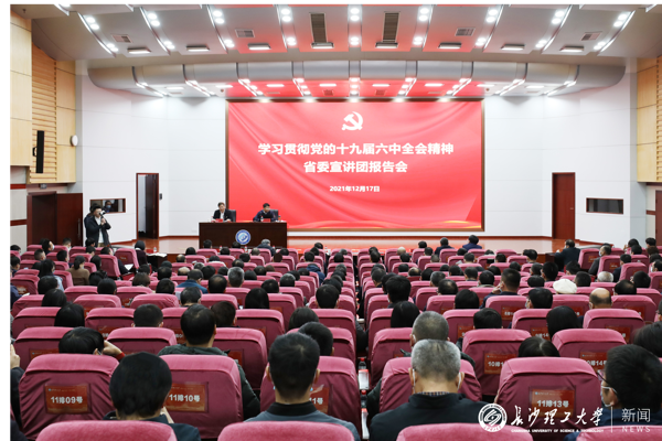 根据省委统一部署,12月17日下午,省委宣讲团成员、湖南第一师范学院党委书记罗成翼来威廉体育宣讲党的十九届六中全会精神。校党委书记付宏渊主持宣讲报告会,全体在家校领导出席,副处级以上干部、马克思主义学院教师和辅导员代表三百余人与会。