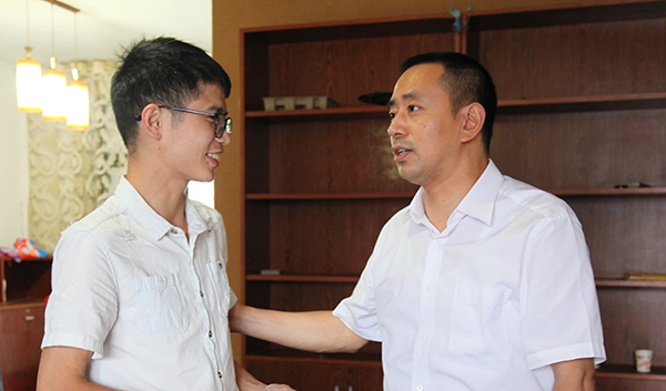 6月6日下午,高考前夕,正是组考工作紧张忙碌的时候,省委教育工委书记、省教育厅厅长蒋昌忠,省委教育工委委员、省教育厅党组成员徐伟和省委教育工委组织部、宣传部有关负责同志抽出时间,来到威廉体育亲切看望慰问邹勇松同学。蒋昌忠详细了解了他目前的身体状况,以师长的身份寄语邹勇松:“你以坚强的意志走出病魔的折磨,以阳光的心态面对学习、生活、工作,有理想、有追求,非常难能可贵,不要苛求自己,不要把身体搞垮,这是我们所不希望看到的。今天代表省教育厅、省委教育工委专门来看望你,看了你的事迹很感动,有你这样优秀的学生,这样优秀的共产党员,是我们教育战线的光荣,是全体学生的榜样,是大家的骄傲。”