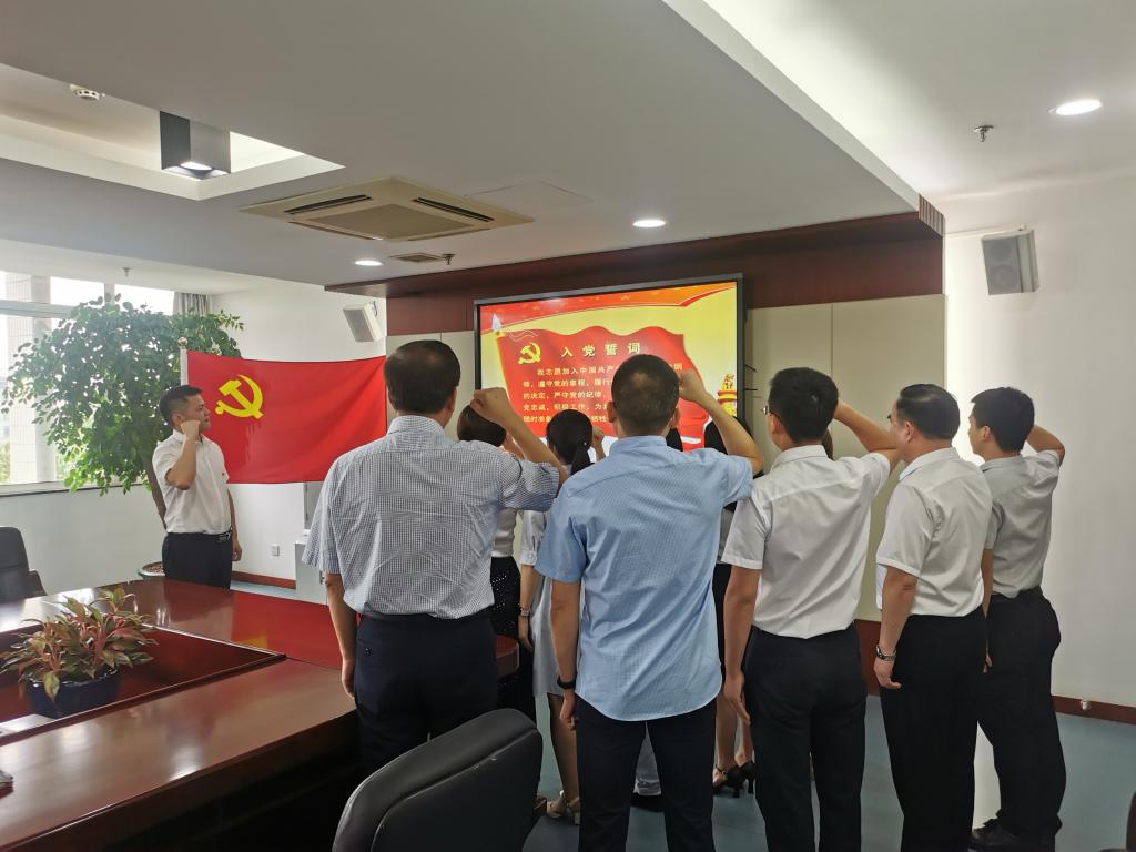 随后,在庄创奇的带领下,支部全体党员高举右手,面对鲜红的党旗,庄严宣誓,重温入党誓词。