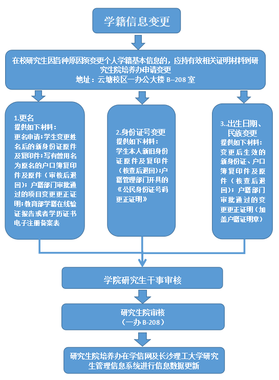 研究生学籍信息变更相关事宜办理流程图