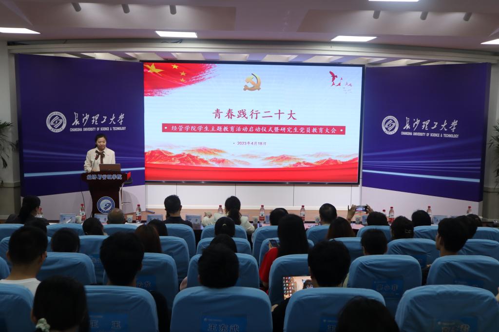 4月18日下午,经管学院在金盆岭校区12教200举行“青春践行二十大”学生主题教育活动启动仪式暨研究生党员教育大会,校关工委常务副主任王乃厚、院党委书记丁丹、特邀党建组织员宋建设、学院专职组织员丁力、院关工委常务副主任黎月娥、企管系支部书记李祝平,陈均杰老师、学工办主任周路路、研究生辅导员肖翠、吴畏及全院研究生党员,本科生代表参加,会议由学院党委副书记唐青主持。