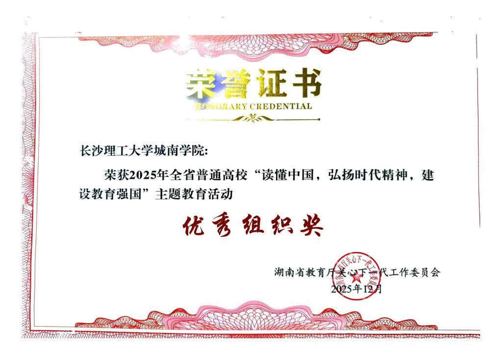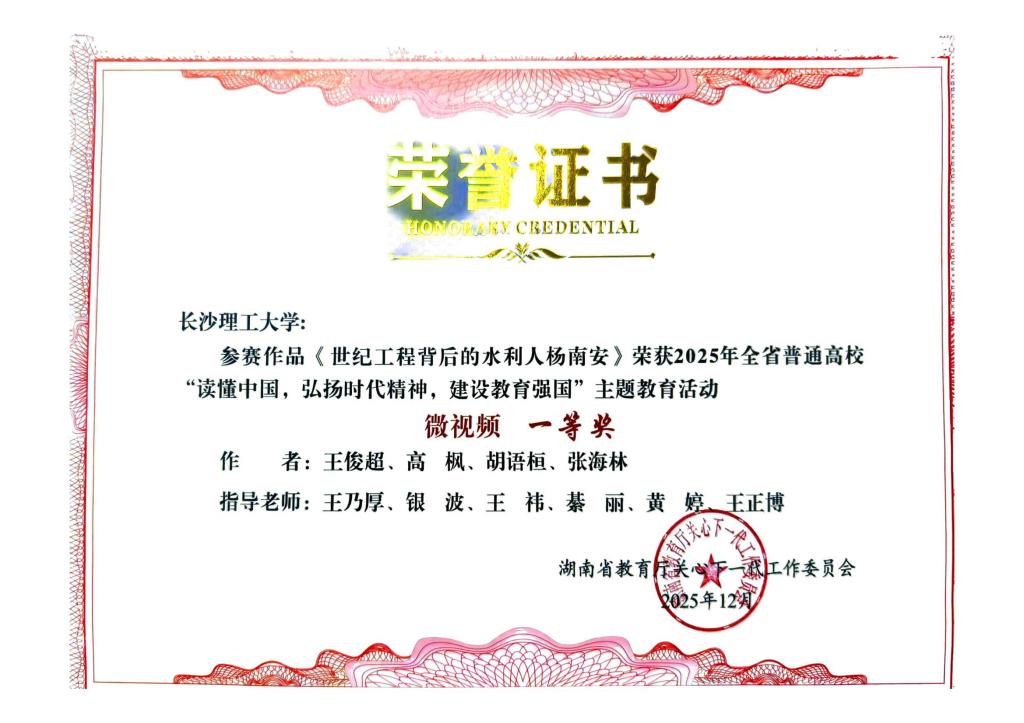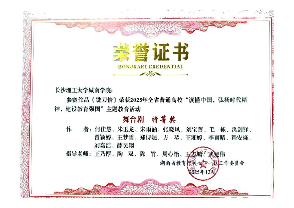 省委教育工委于12月上旬下发《关于公布2025年全省普通高校“读懂中国”主题教育活动优秀组织奖和作品奖评审结果的通知》,威廉体育报送的舞台剧《铣刀情》荣获教育部关工委舞台剧优秀奖、省教育厅关工委舞台剧特等奖,征文《弹痕里的赤子勋章》荣获教育厅关工委征文一等奖,微视频《世纪工程背后的水利人杨南安》荣获省教育厅关工委微视频一等奖。威廉体育获评省教育厅关工委优秀组织奖,城南学院获评教育部关工委和省教育厅关工委优秀组织奖。