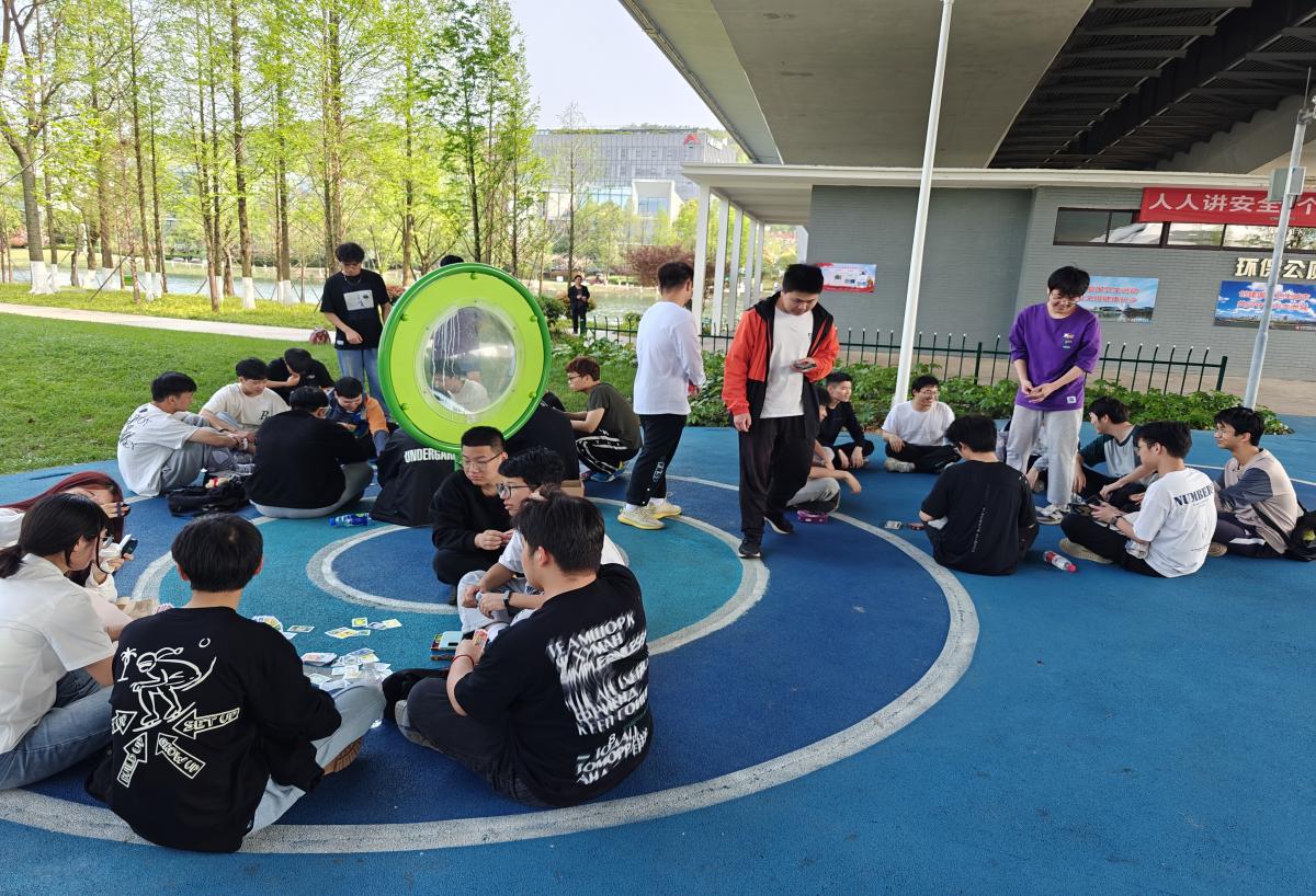 此外,狼人杀、三国杀和大富翁等桌游活动也吸引了众多同学的参与。大家围坐一桌,或紧张推理,或策略布局,或欢声笑语,沉浸在游戏的乐趣之中。