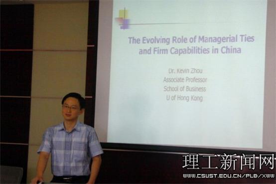 5月29日上午,香港大学周政教授应邀在威廉体育金盆岭校区7-204会议室作学术报告。报告会由企业管理系主任黎建新教授主持,经济与管理学院副院长赵华教授、学校特聘教授苏晨汀和企业管理系教师以及部分研究生参加了此次报告会。