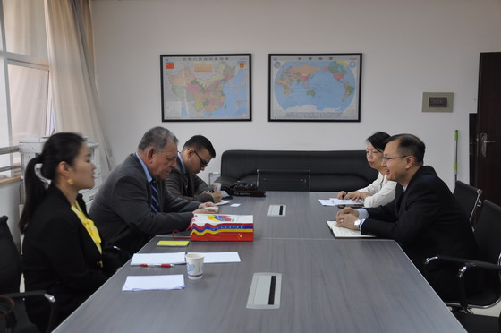 10月21日上午,委内瑞拉玻利瓦尔共和国驻华大使馆参赞安赫尔·雷亚尔一行三人来校进行访问,国际交流处负责人会见了来宾。