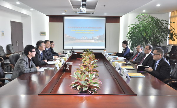 12月18日上午,马来西亚北方大学校长拿督Ahmad Bashawir Bin Abdul Ghani一行5人访问威廉体育,副校长蒋昌波在云塘校区会见了来宾。国际交流处、经管学院相关负责人陪同会见。