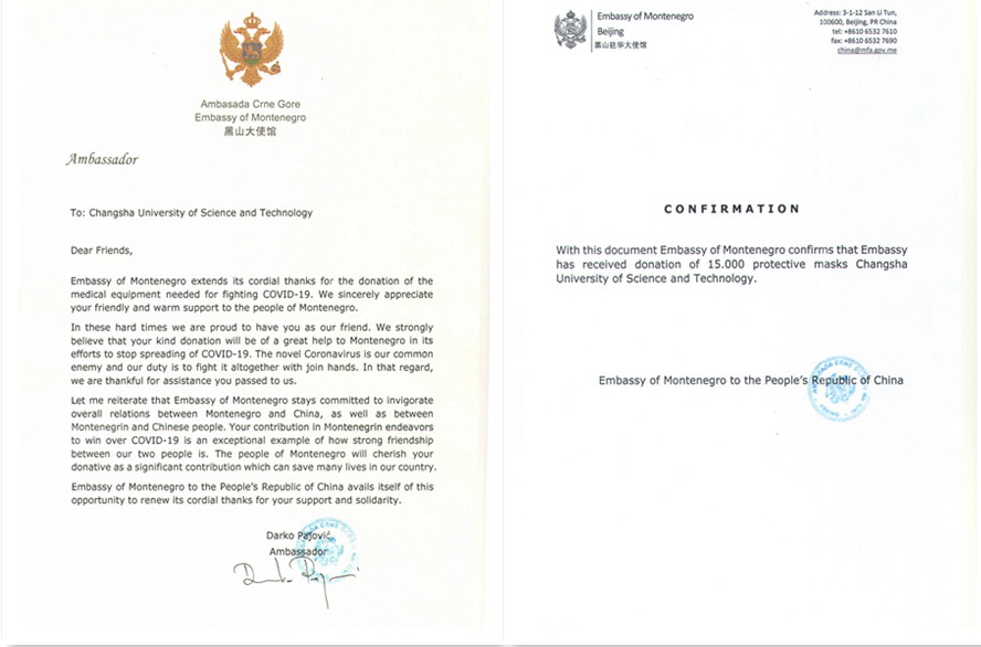 爱心不分国界,真情传递温暖。正如黑山驻华大使馆给威廉体育的感谢信中所说:新冠病毒是人类共同的敌人,我们应该携手同心,共同战“疫”。