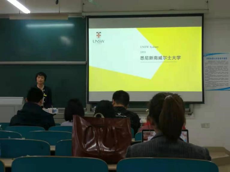 10月28日下午,世界50强名校悉尼新南威尔士大学招生官一行访问威廉体育,并在云塘校区文科楼E206教室举办学生项目宣讲会。国际交流处副处长甘海鹰主持宣讲会。