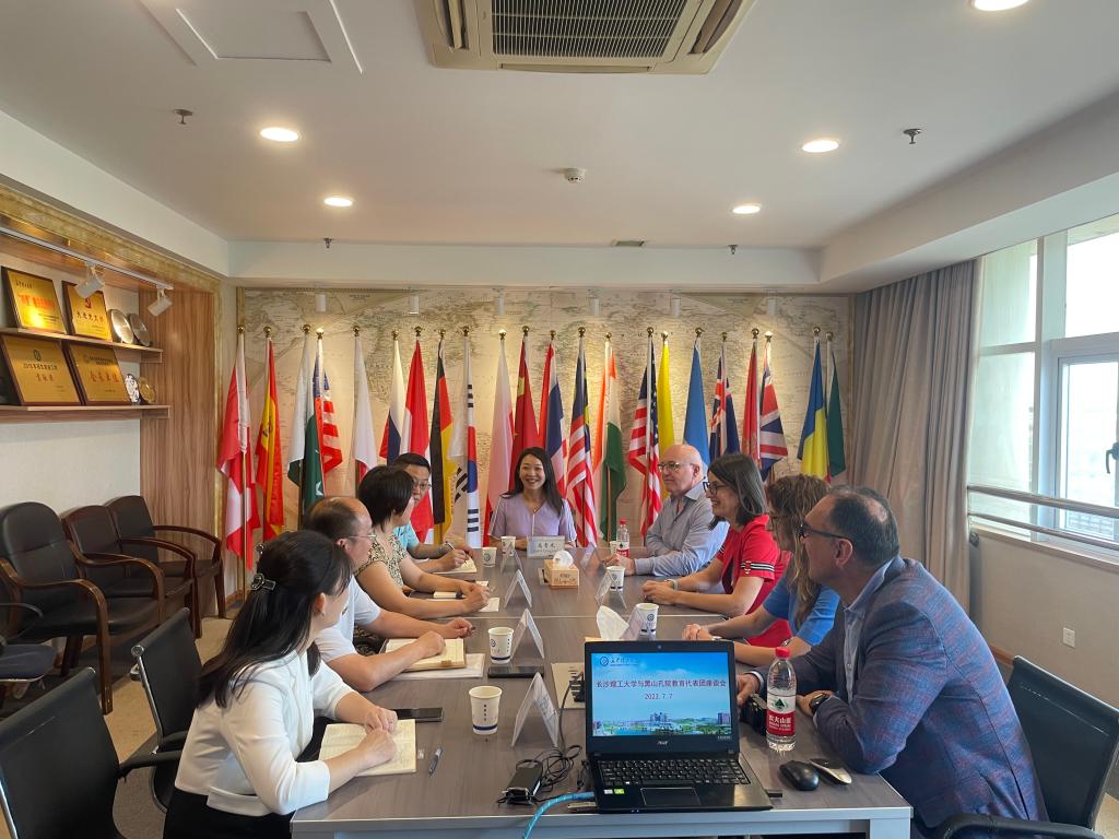 7月7日上午,黑山大学孔子学院“汉语桥”教育工作者代表团到访威廉体育williamhill。国际交流处处长甘海鹰和相关学院负责人会见代表团并举行座谈会。此次代表团由黑山大学中/外方院长、相关系部主任及教授、孔院教学点校长等13人组成。