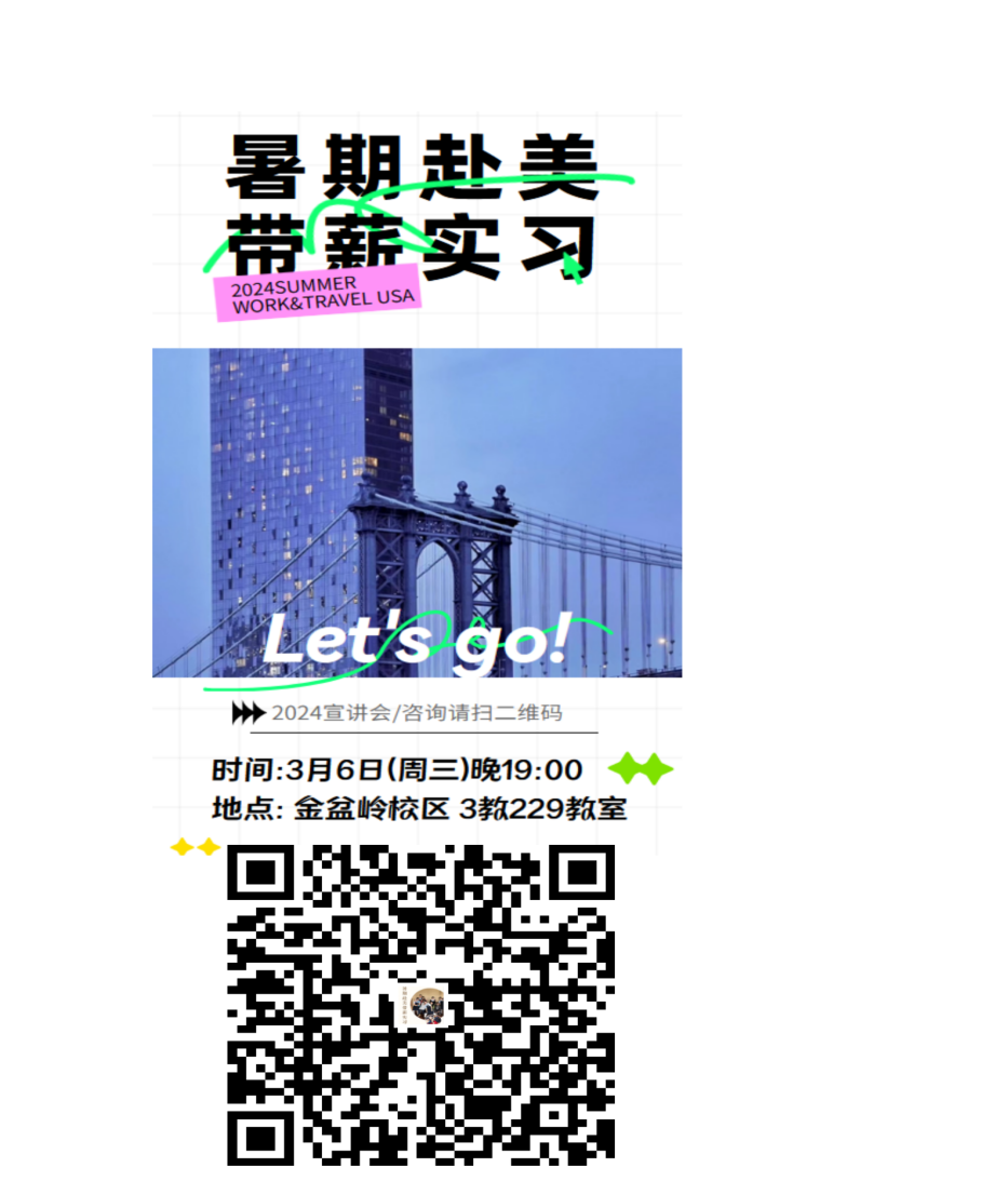 针对全校不限年级专业,基本口语沟通即可,上海市出入境全球最好的sponsor:CIEE《国际教育交流协会支持》,匹配的岗位都是最优质的,每年的出行时间6中旬月-9月,(结束工作后有1个月合法旅行期可在美国旅行或选择提早按照学校要求时间回国)岗位可按照意向和口语等级综合匹配,岗位大多分部在国家公园,游乐园,旅游胜地,大型度假村酒店,商店超市等,都是基础类服务类工作,包含{销售助理,烹饪助理,餐饮服务,公园向导,主持人,解说员,卡通表演,酒店客房服务员}等,地点多在东西部旅游城市,东部沿岸及五大湖周边。