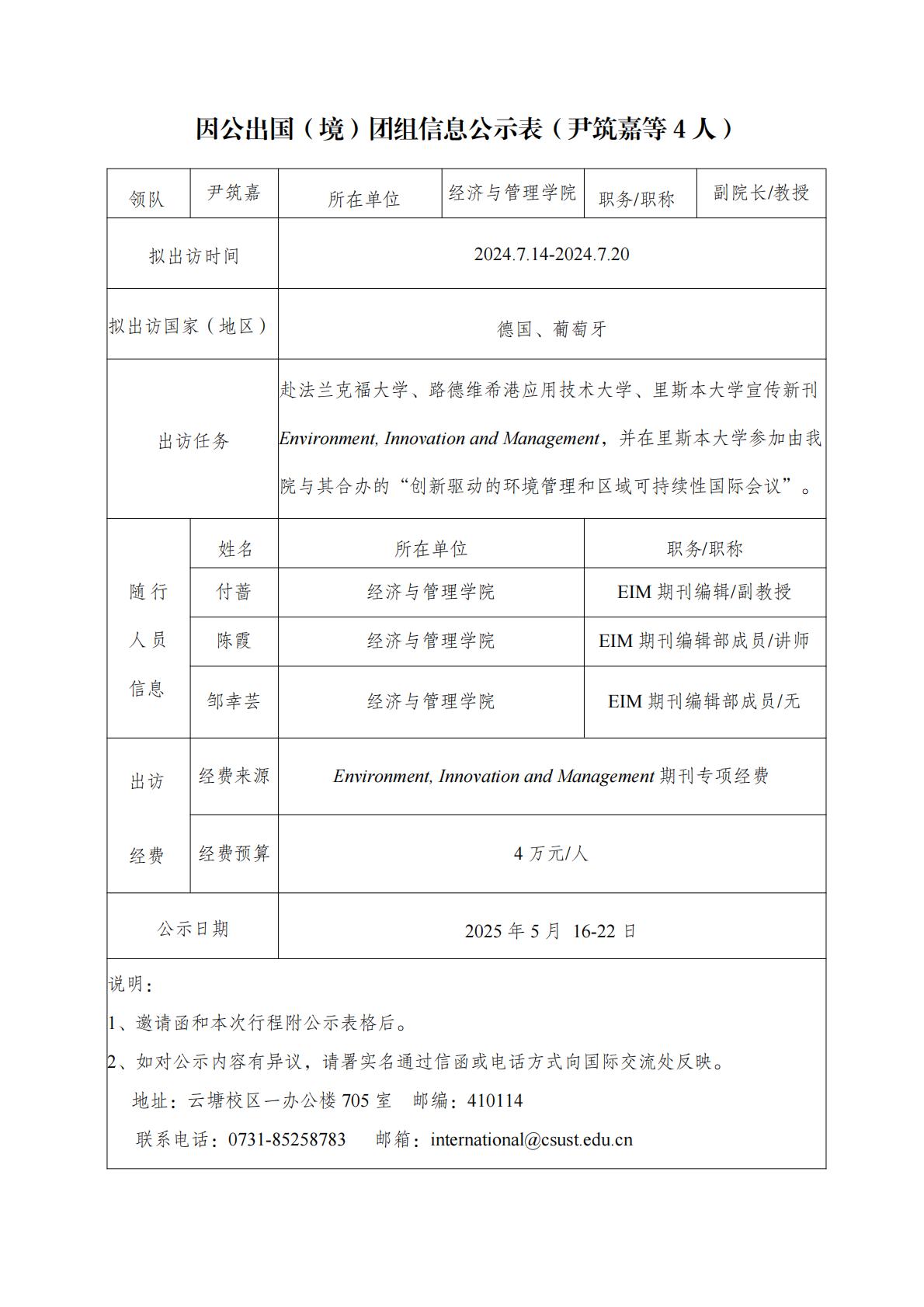 因公出国(境)团组信息公示表(尹筑嘉等4人)