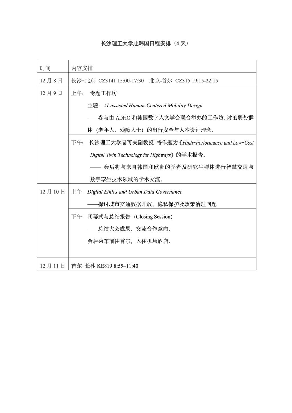 因公出国(境)团组信息公示表(张军辉等6人)