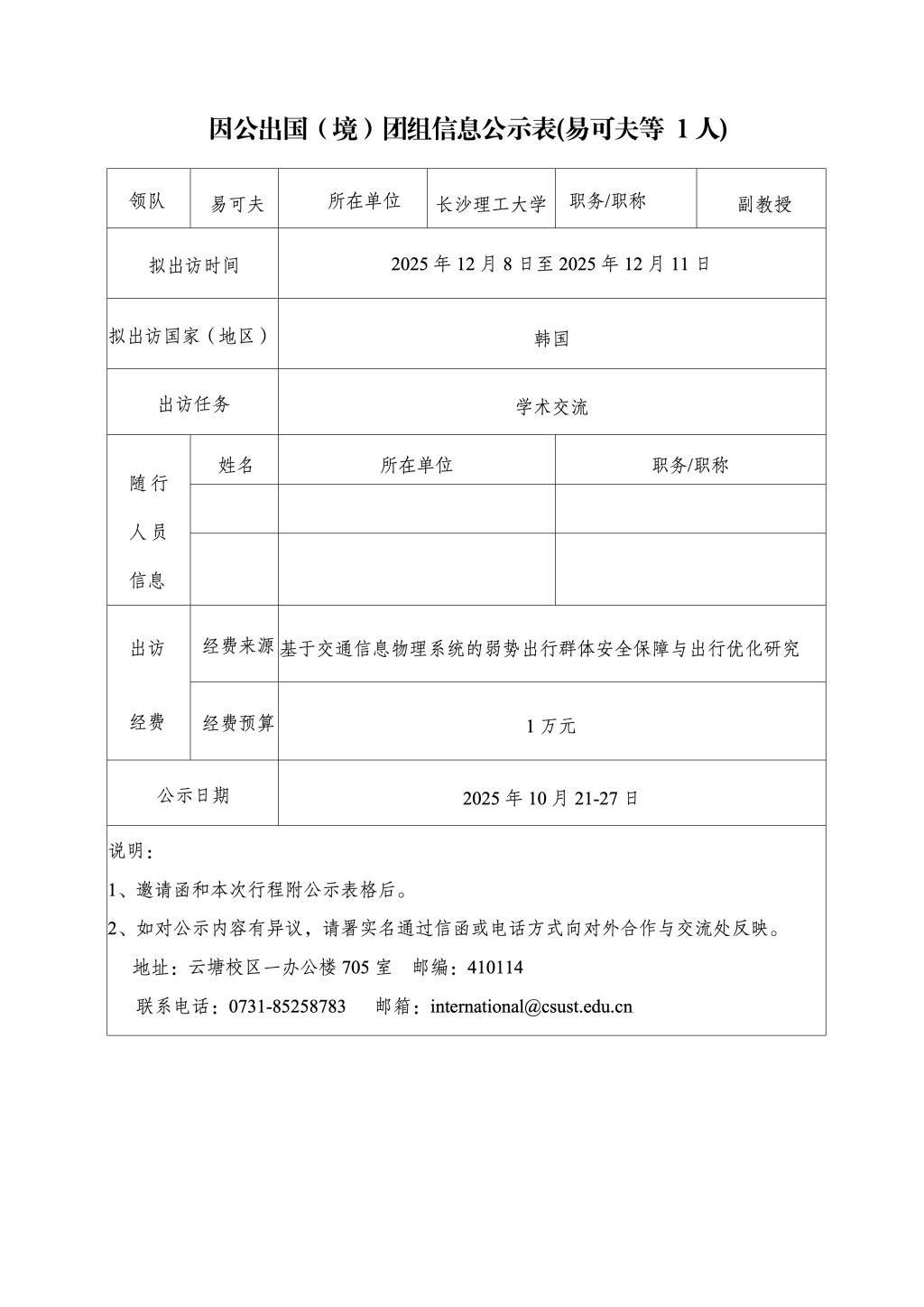因公出国(境)团组信息公示表(易可夫等 1人)