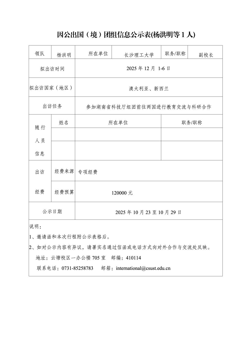 因公出国(境)团组信息公示表(杨洪明等1人)
