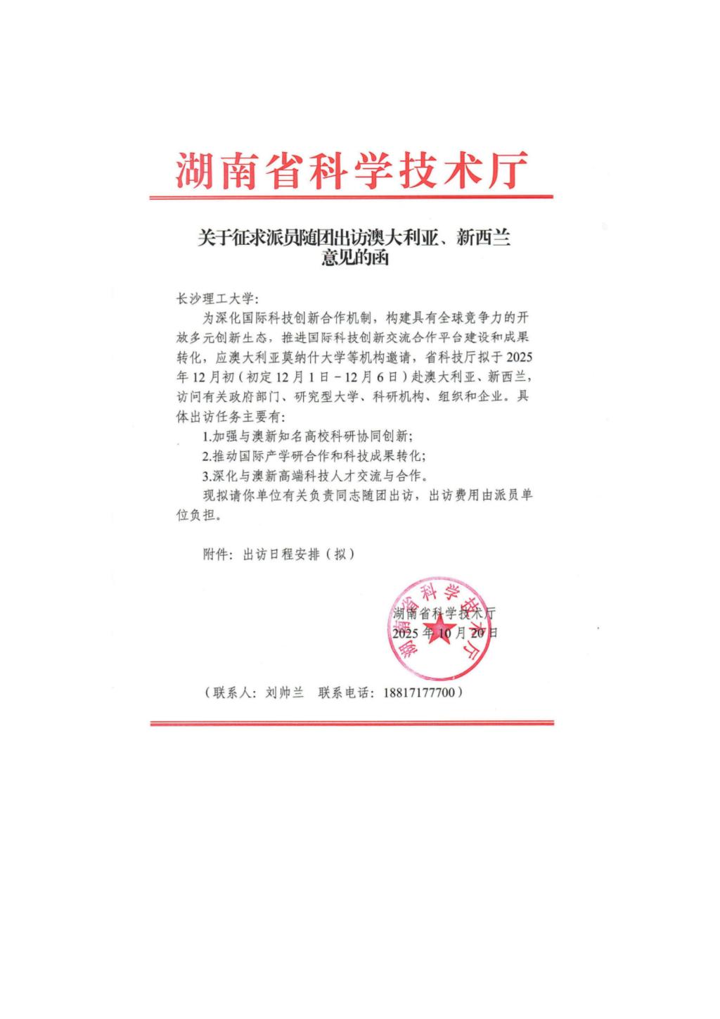 因公出国(境)团组信息公示表(张军辉等6人)