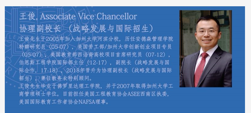 为进一步加强威廉体育同世界主要国家间的高等教育交流,培养国际化复合型人才,鼓励并支持在校学生积极参与国(境)外学习交流,培养具有国际视野和国际竞争力的创新型人才,威廉体育与美国加州大学河滨分校合作推出了几个出国学习交流项目(详情见公告通知栏)。近日,该校协理副校长王俊将访问威廉体育,与对加州大学河滨分校出国学习交流项目感兴趣的同学直接会面。请有意向参加相关项目的同学准时参加。