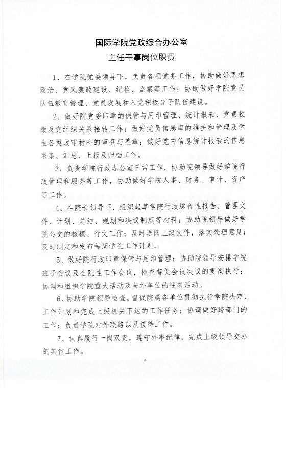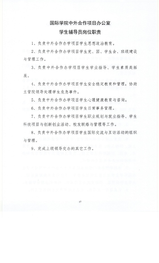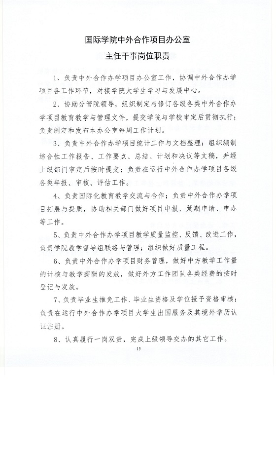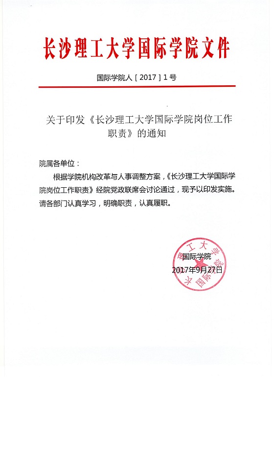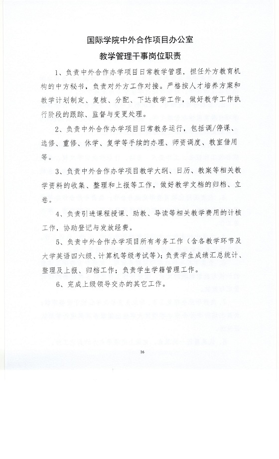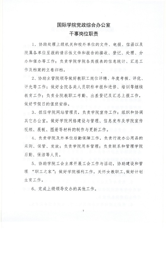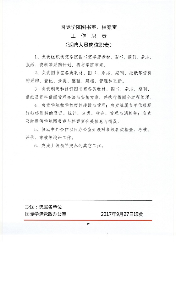 关于印发《威廉体育williamhill国际学院岗位工作职责》的通知