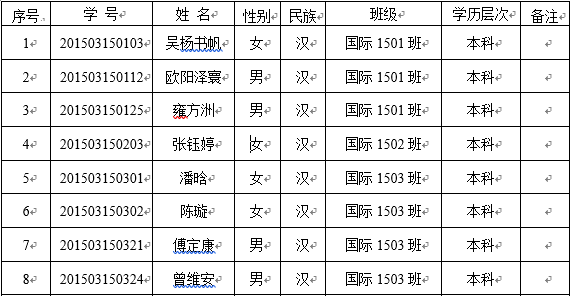 拟推荐校级优秀毕业生(8人)