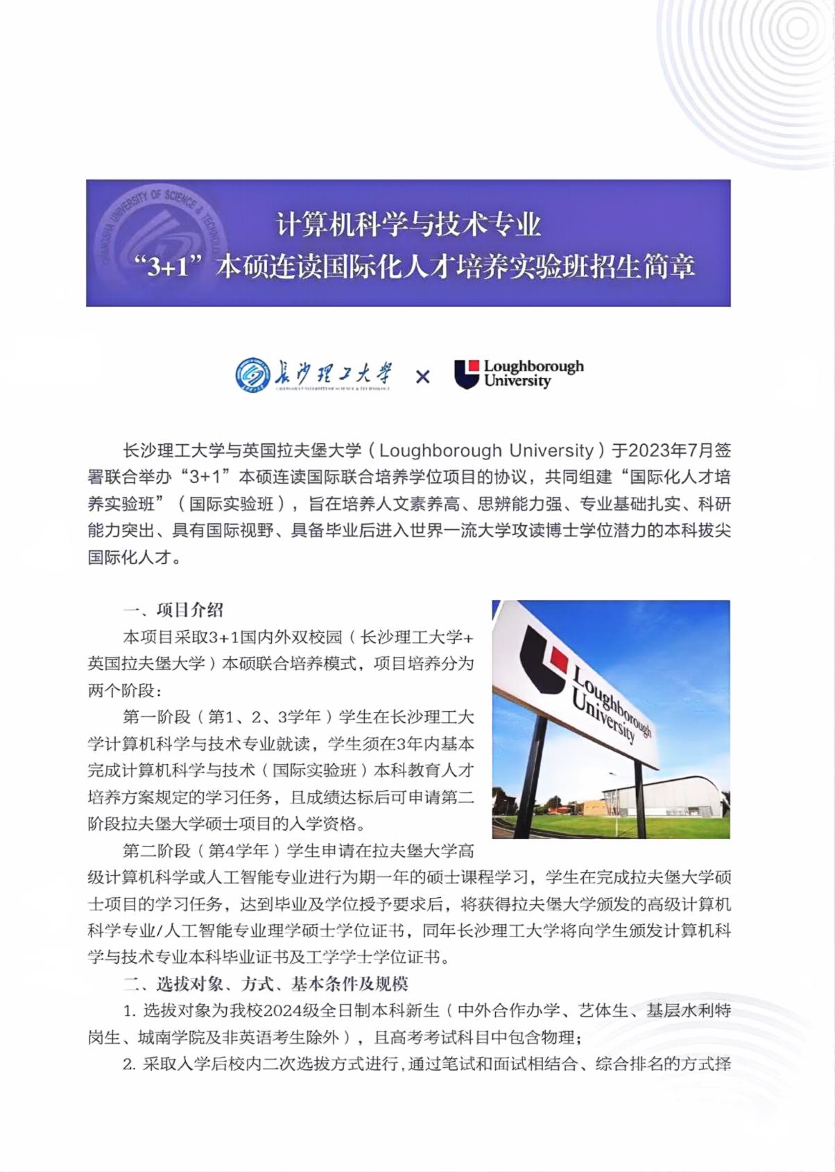 威廉体育williamhill计算机科学与技术专业“3+1”本硕连读国际实验班招生简章
